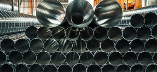 На нашем складе есть стандартные размеры воздуховодов и фасонных элементов круглого сечения от Ø100 –Ø315 длинной 3 метра, толщина 0,5мм. Это самые ходовые позиции. Воздуховод большего диаметра, делаются из более толстой стали 0,7 и 1 мм, так как им требуется большая жесткость.